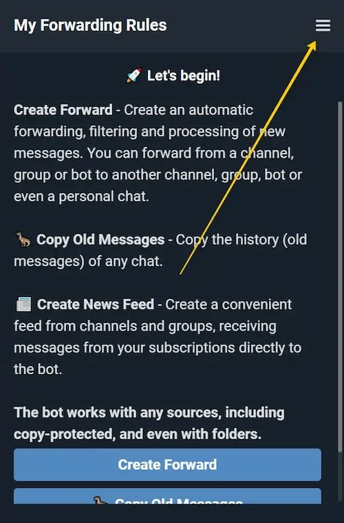 Open your chat with Junction Bot and click on Menu.