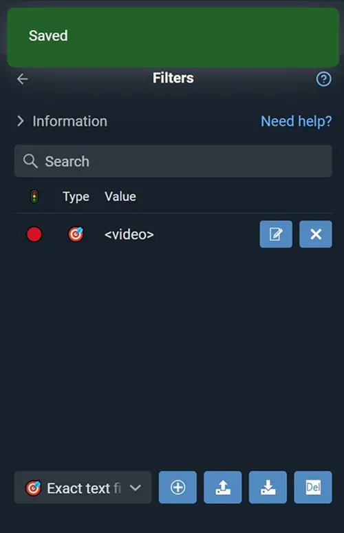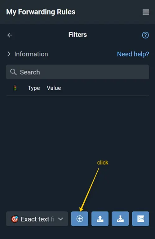 Click + to create a new filter. Select "Exact text" as the filter type.